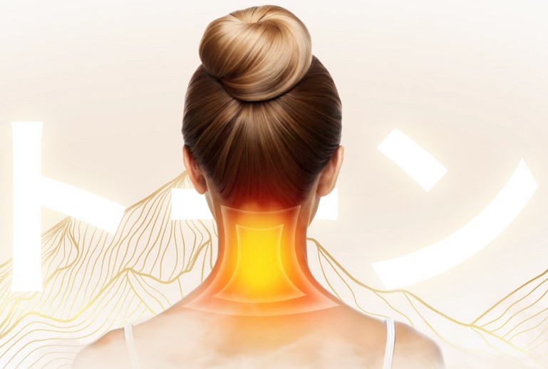 Массажные ролики движутся вниз по затылочному треугольнику и касаются точек здоровья Фэн-чи в нижней части черепа.