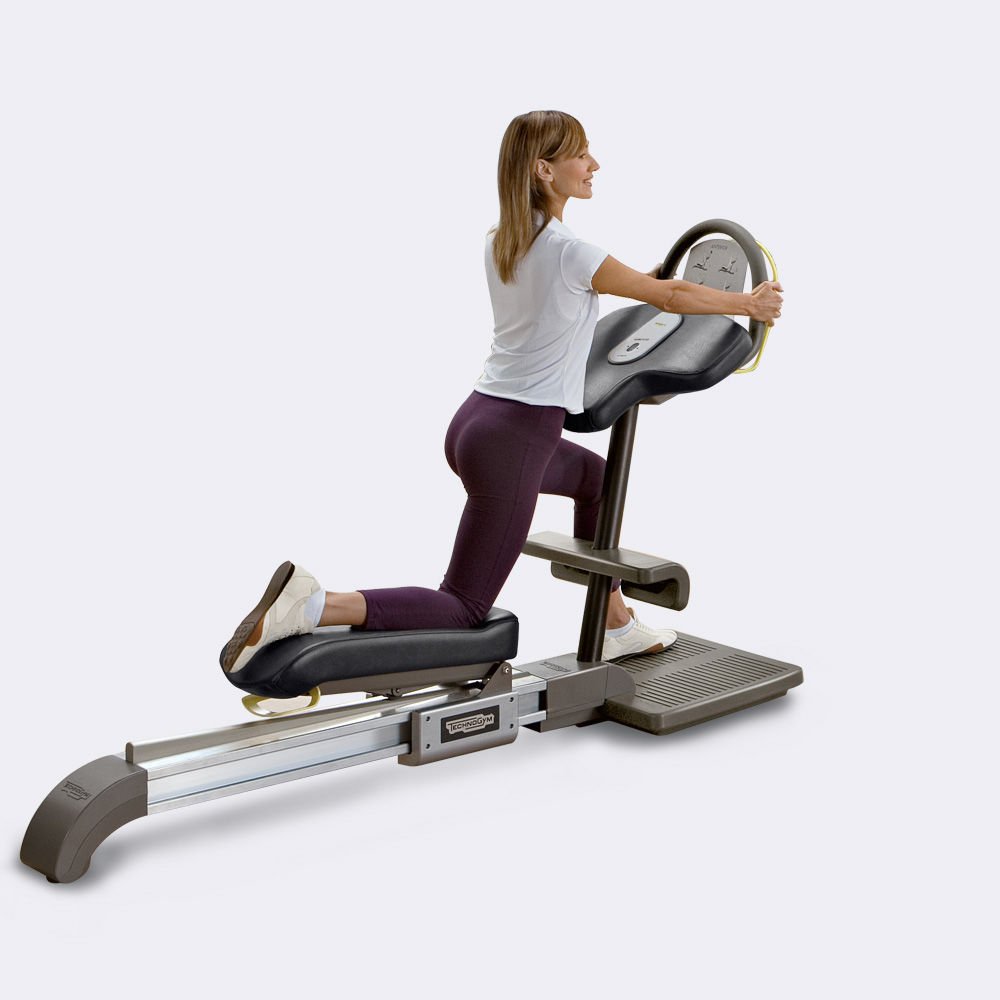 В тренажере реализована система Bodyprint для задней опоры, сиденья и передних колесиков. Этот инновационный материал обеспечивает максимальный комфорт во время упражнений, так как специальный наполнитель принимает форму тела пользователя.