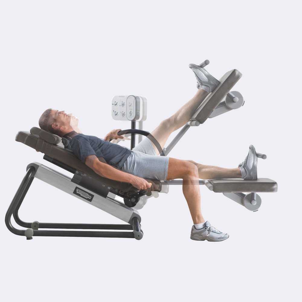 Для безопасного и комфортного удержания положения при растяжке тренажер оснащен предохранительным тормозом. Пользователь полностью контролирует скорость растяжения, что обеспечивает безопасность процесса.